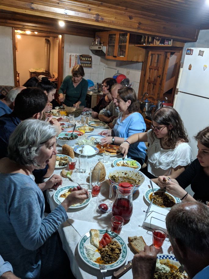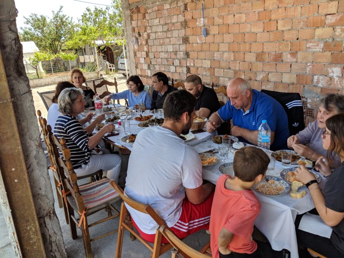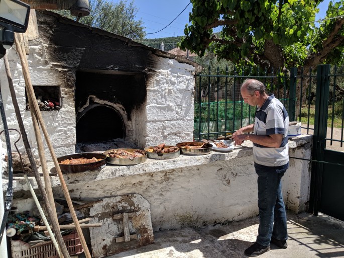 Ioannis and Kiki picked us up this morning to go to Kiki’s home village. There we had a traditional pre-Easter meal (feast) with Kiki’s parents and sibling’s family.