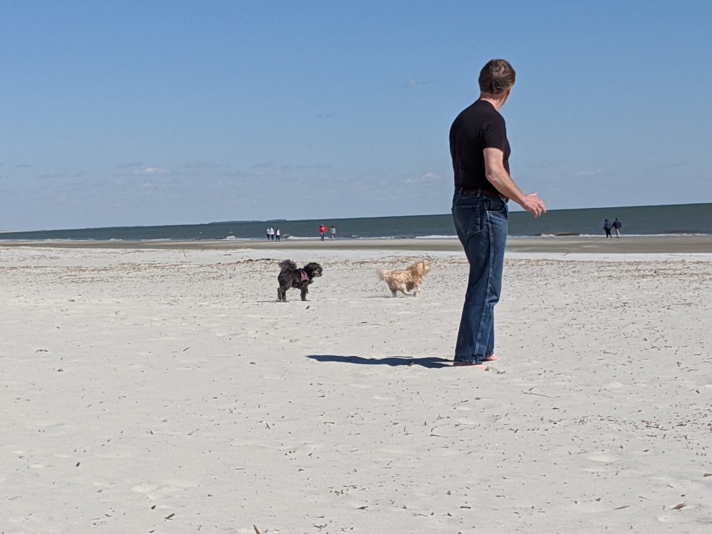 Today we then went to Hilton Head to try out the beach. Wow, delightful broad and white sand. Sheba had the best time, running and playing with other dogs.