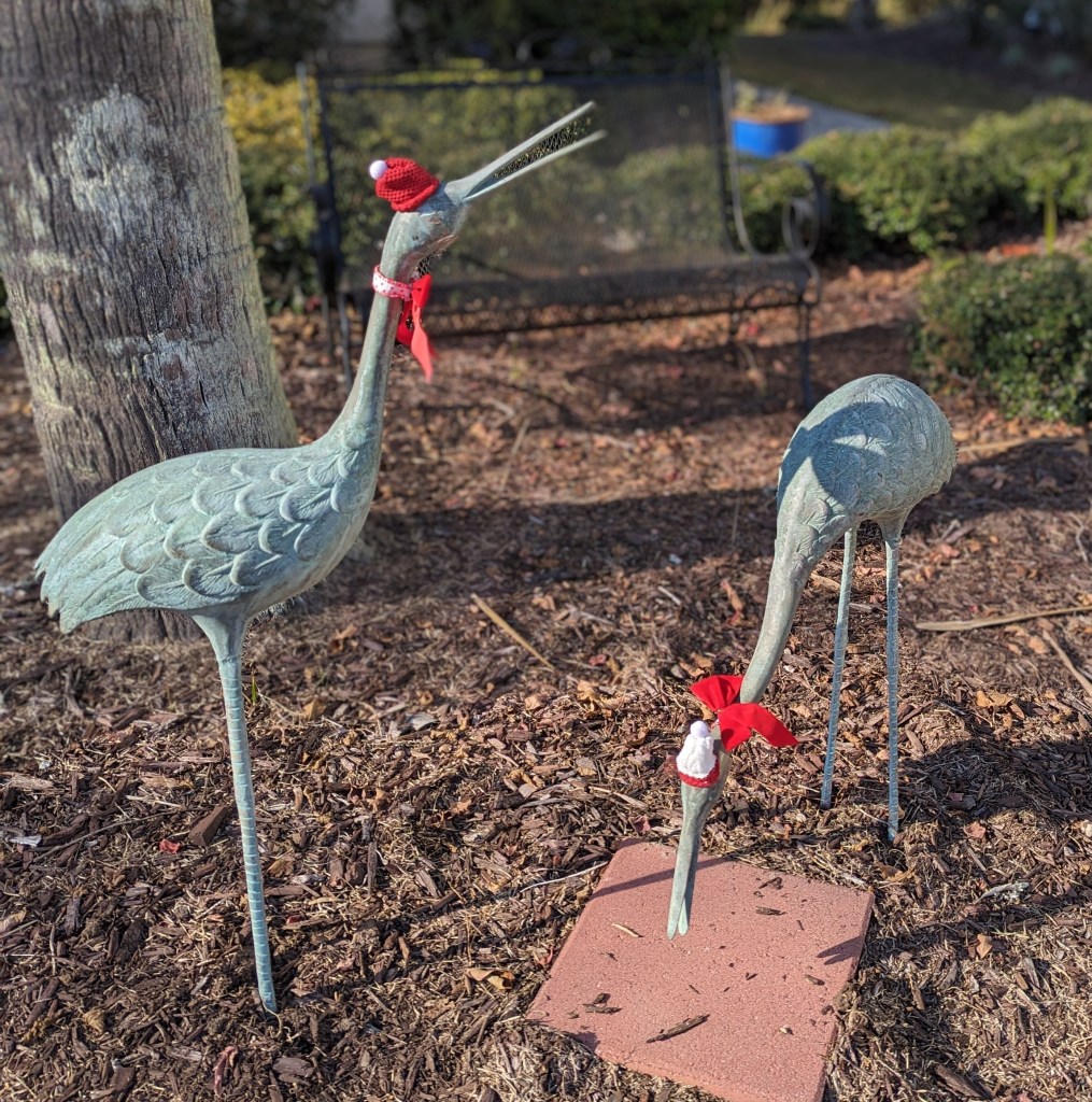 We will be exchanging some presents this evening because Emma will be traveling to England to spend Christmas with James and his family. Tomorrow is the Community Parade that we will be watching with neighbors. In the afternoon we will be having an open house for neighbors and friends. The house is decorated thanks mainly to Tina, Emma and Jim. I did have one contribution; I decorated the bronze birds in front of the house.