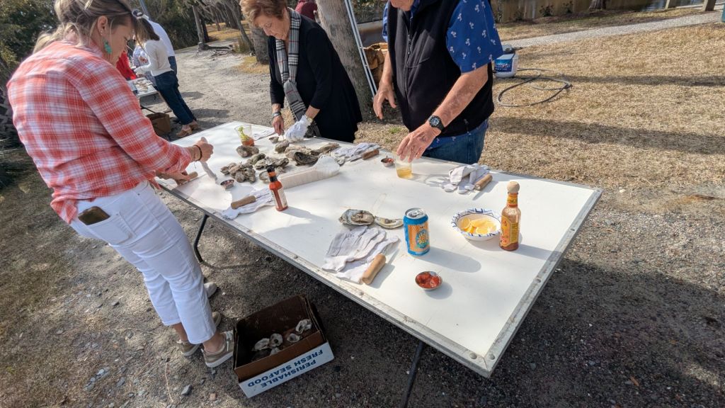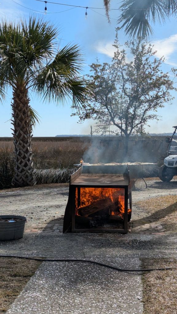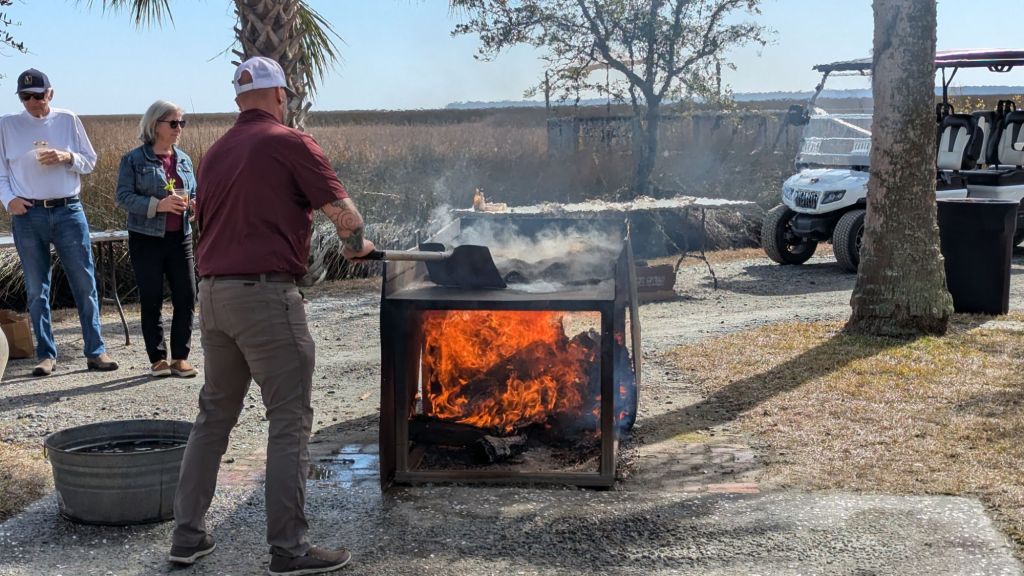 Evidently an oyster roast is a traditional event in the southeast. We were invited to our first Oyster Roast by our nextdoor friends. It took place at our friend’s family estate south of Savannah. It is now a private event space owned by what was the family enterprise and is now an international corporation.