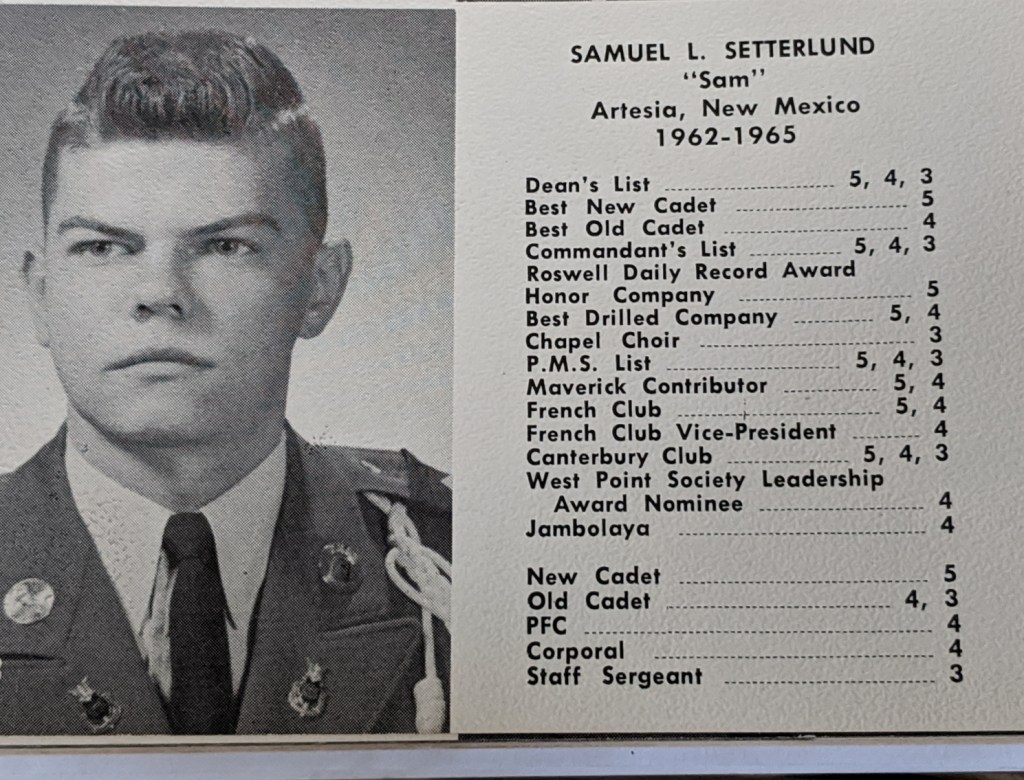 I posted a while ago that my friend Sam and I reconnected after about a fifty year hiatus. We were friends in High School but lost track of one another after graduation. We reconnected around the time of our class fifty year reunion. Sam and I went to the New Mexico Military Institute, NMMI, a military boarding school in Roswell, NM (Although famous for aliens, I did not encounter a single one). Last October Tina and I traveled to Texas where I reunited with Sam in person where we met his wife for the first time. We had a fun lunch with them near their home outside of Dallas. Reconnecting after such a long time was an interesting experience and delightful experience for me. Seeing Sam was a truly a joy, we picked up conversations from half a century ago without missing a beat, I cannot explain how that can happen after fifty years.