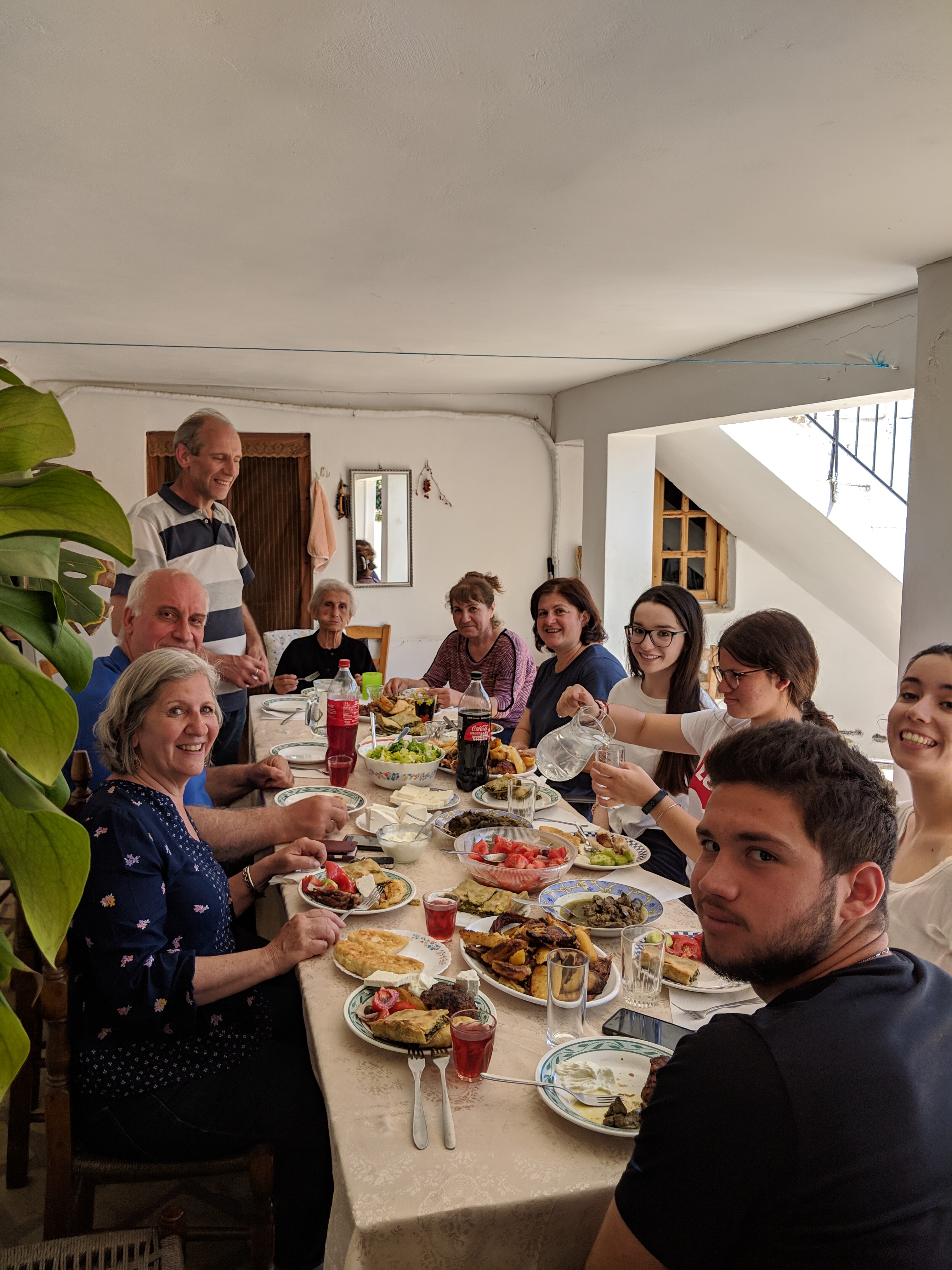 Ioannis and Kiki picked us up this morning to go to Kiki’s home village. There we had a traditional pre-Easter meal (feast) with Kiki’s parents and sibling’s family.